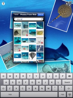 Start a new collage by tapping the screen and you have many options of where to find pictures. We chose to get ours from the web so a mini screen popped up with lots of options to choose from. When you click “done” those images are randomly placed on the screen and you can start to edit your collage. Make images bigger or smaller, move them around or use them for your background.