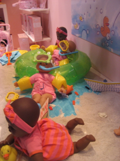 - Corolle’s new dolls that love the water, include “Bébé Bath & Accessories.” Filled with beads that dry quickly, she is ready for snorkeling adventure in the tub, complete with floaties, flippers and a snorkel mask!