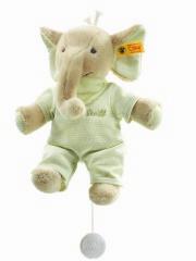 Elephants are a hot item in the nursery these days and this little one invites a hug or coo with his stitched on smile and eyes. Pull his cord to soothe your baby to sleep and know that he is listening to differences in sounds and building listening skills preparing for speech.