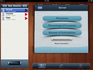- Ability to use in a group session, easily selecting the target sounds for each child and setting up taking turns with appropriate tasks for each child–even the ability to rotate the image on the screen to face children around a table