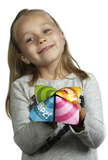 Flapz is the flat “cootie catcher made from Tyvek pictured above. Moms and kids remember making their own version of this to pass the time. There are many challenges from pretending to be the weatherperson and delivering the weather to describing a menu for a restaurant for witches and goblins. The language activities are interspersed with physical feats such as pantomime climbing a ladder or yawn until you make someone else yawn. It could certainly be used for a social language learning lesson.