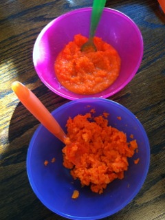 Few things can make mom feel better than making her own baby food for her child! Moms were excited to try Infantino’s new Fresh Squeezed feeding line, especially when they saw the personalized pouches that are so popular with kids today. Fresh Squeezed Station can stand alone as an efficient way to load up portable food pouches or be embellished with some of the accessories that can be used as part of the system. Let’s start at the beginning with Steam and Smush which is a sturdy but light weight cup and masher, easy to use, microwave save and with only 4 pieces to clean! I wanted our tester moms to see how the feeding line worked for variations in texture to be helpful for therapists and parents assisting kids in feeding for oral motor strength. Mighty Mill can be secured for travel with a rubberized band, for mom and child on the go or plug in the Preppy Puree to do the grinding for you and again watch the timing to get the consistency you want. The Squeeze Station was fun as mom put in her mashed carrots and zucchini and pressed down to squeeze the mixture into the attached pouches. We tried some of the 50 Pack Squeeze Pouches but Mom also appreciated the Reusable Squeeze Pouch that clips on bags or strollers for easy travel. Couple a Spoons screwed on to the pouches and worked well to feed an 8 month-old. This Fresh Squeeze Feeding Line is great for moms interested in providing homemade baby food easily and packaging it for on-the-go! As speech pathologists, many of us work with infants or children needing feeding assistance to help with oral motor strength and precision leading to age appropriate language and articulation. This system can be helpful for parents to prepare soft foods in varying consistencies as well as providing a fun way to eat, squeezing the pouches and sucking out the snack! Sucking on the rounded opening helps lip rounding and tongue strength. Our tester noted that the food needs to be mashed fairly small to be squeezed into the pouches in the Squeeze Station but can certainly be delivered by spoon too!
