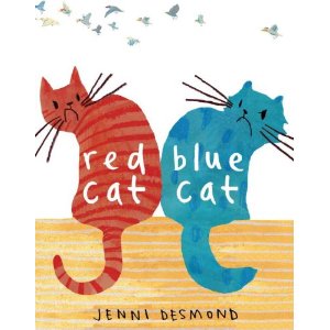First we read, Red Cat Blue Cat by Jenni Desmond. The front cover art cleverly depicts where this story begins–the two cats are back to back with grumpy looks on their faces. Perfect for the lesson to begin since we are working on answering questions about the text and where we get our clues, from the print or pictures. These two cats live in the same house but hiss, yee-ow and scratch whenever they run into each other.They didn’t realize that each was jealous of the other. Blue Cat wanted to be fast and bouncy like Red Cat and Red Cat admired Blue Cat’s brains and cleverness. After unsuccessful attempts at changing their colors to match their counterpart, both cats worked together to become un-red and un-blue. They worked hard to help the other become like them until they realized they didn’t need to change but like who they were. As my little friend said at the end, “They were different but they were friends!”