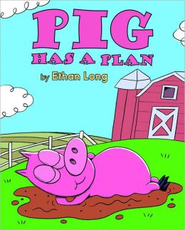 My latest PAL Award winner, Pig Has a Plan, actually makes learning to read fun. Having just returned from time with a 4 1/2 and 6 year-old at various stages of learning to read, I listened to both boring and quite clever beginning readers. In this tale, Pig approaches the mud puddle outside the barn, stretching his arms, and yawning to “Pig wants to nap.” We know just what he desires but his friends have plans of their own. Hen wants to saw, Cow wants to gab, Cat wants to pop (balloons) and so on as each animal joins the farm field busy making noise as they inflate balloons, construct a picnic table, mix a cake, sip the drinks, and bop to the music. Finally Pig has a plan for his nap, in spite of his surprise birthday party that has been assembled around him. Ethan Long’s delightful cartoons carry the clever story of few words to excite kids about reading books.
