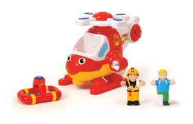 WOW Fire Rescue Rory is a parent’ s dream because it has only four pieces but so much potential for creative play. The helicopter is powered by kids, pulling the trigger, activating the friction motors to fly to the rescue. A casted figure slips into the stretcher to be scooped up by Rory thanks to a magnet system. Kids love to transport the injured person and release him to a doctor’s care. The story is totally up to the child as they add on doctors, hospitals and helpers.