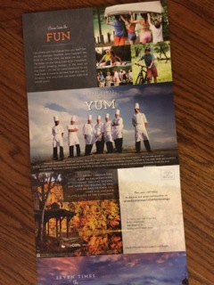 I am working with a student on conversational skills– commenting more and asking fewer perseverative questions. So when this colorful brochure arrived, advertising a community offering and picturing boating, horseback riding, eating, biking, swimming and more, I decided to use it to spark some conversation and even brainstorming in categories like what we would like the chefs to make for us (steak, pasta…) or when did we go horseback riding (Hole in the Wall Camp) and so on. Because my student is in middle school but is more limited cognitively, it is hard to get appropriate materials some times so the mail delivered just what I needed and he enjoyed it!