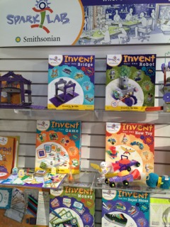 Best in Show for Combining Multiple Modes of Learning Fun: I had to have a category for the toys I was most impressed with that combined multiple dimensions of learning. Faber-Castell’s Spark Lab was created in conjunction with the Smithsonian taking young entrepreneurs through the steps to invent and eventually sell a product–super shoe, toy, money or robot. Planning, problem-solving, critical thinking, and negotiating, are all language skills that go into creating a product. WonderForge did it again, making us laugh and learn with their “Thing Two, Thing One, Whirly Fun” preschool game, challenging kids to work together (social skills, language) to clean up fast after The Cat in the Hat and his helpers make a mess of the house (inspires pretend play) before mom gets home (fine motor skills). I’ve seen and played with a lot of trains, but the new Hape Railway has a fresh, ingenious take on the preschool rail adventure, led by animal rail cars. Stocked with original sensory, manipulative activities along the way. Toddlers activate monkeys jumping up from the trees, shape sorters, run across a xylophone, and enter a jungle car wash.