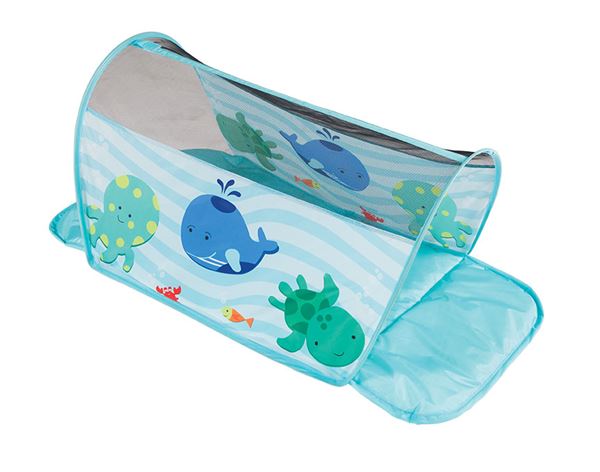 keep baby entertained to add minutes to tummy time. Pacific Play Tents is introducing their first baby product, “Sea Buddies Tummy Tunnel,” designed with a clear peek-a-boo window for siblings to cheer their new baby along. Baby fits comfortably in VTech’s “Tummy Time Discovery Pillow,” designed with exact measurements from tummy time testers and multiple activities to hold attention.